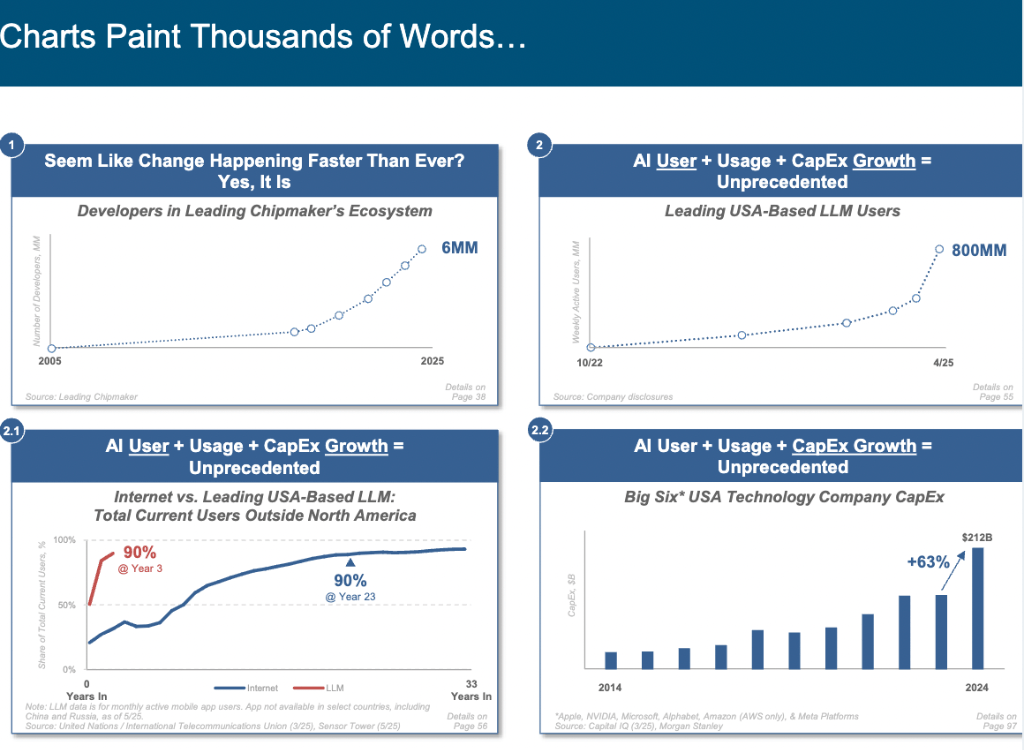 令整个行业为之震动。平台意义将被从头定义。用以描述AI的开辟、采用、投入和利用速度。激发全球普遍关心。其使用内利用时间两年内翻倍,她的AI演讲再次以犀利洞察和详实数据,ChatGPT曾正在 17 个月内狂揽8亿用户,为科技行业指明标的目的。AI海潮已势不成挡,现在,这些并非边缘项目,(互联网女皇发布沉磅发布——玛丽·米克尔《人工智能趋向演讲》)遭到普遍关心。